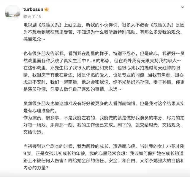 最近,孙俪与吴慷仁首度合作的悬疑剧《危险关系》成为大家茶余饭后的热门话题。这部探讨亲密关系中「PUA(精神操控)」的深刻作品,尽管两位演员都展现了教科书级别的疯狂演技,但收视率却意外不佳。一向低调的「娘娘」孙俪近日在微博发布千字长文,坦言对此「早有心理准备」,还为大家盘点了3部孙俪此生必看的超高分神作,让你再次领略娘娘的魅力!